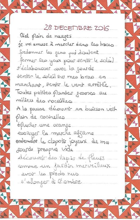 Après une journée de silence, j’ai consigné à la Prévert les sensations et les ressentis de la journée.