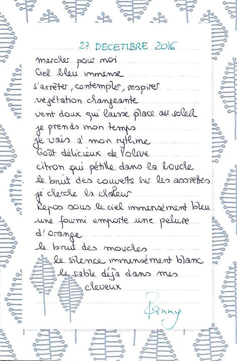 Après une journée de silence, j’ai consigné à la Prévert les sensations et les ressentis de la journée.